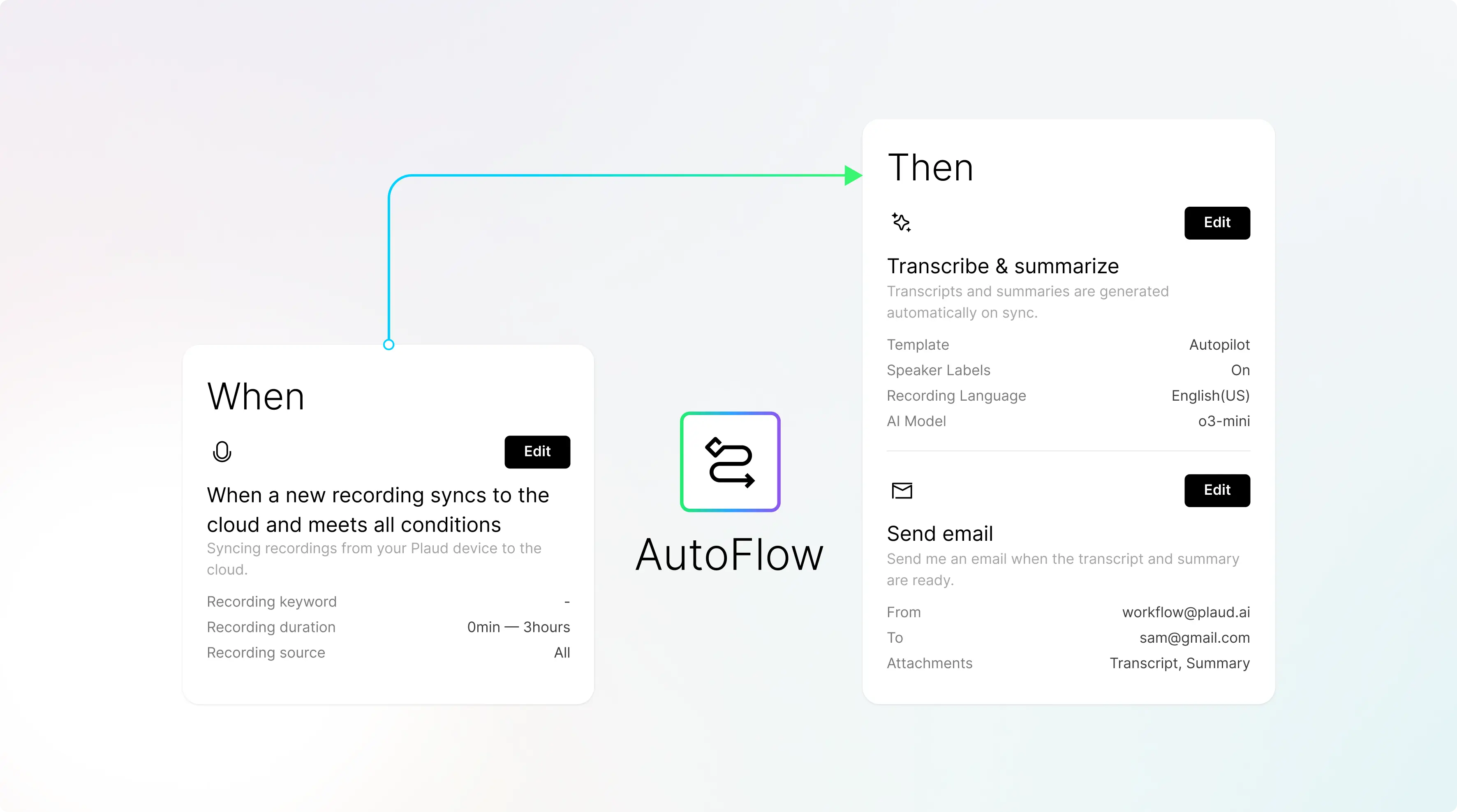 Set up your agentic workflow once and let it run on autopilot. It handles transcription, summarization, and delivery automatically, so your workflow is fast, hands-free, and reliable.