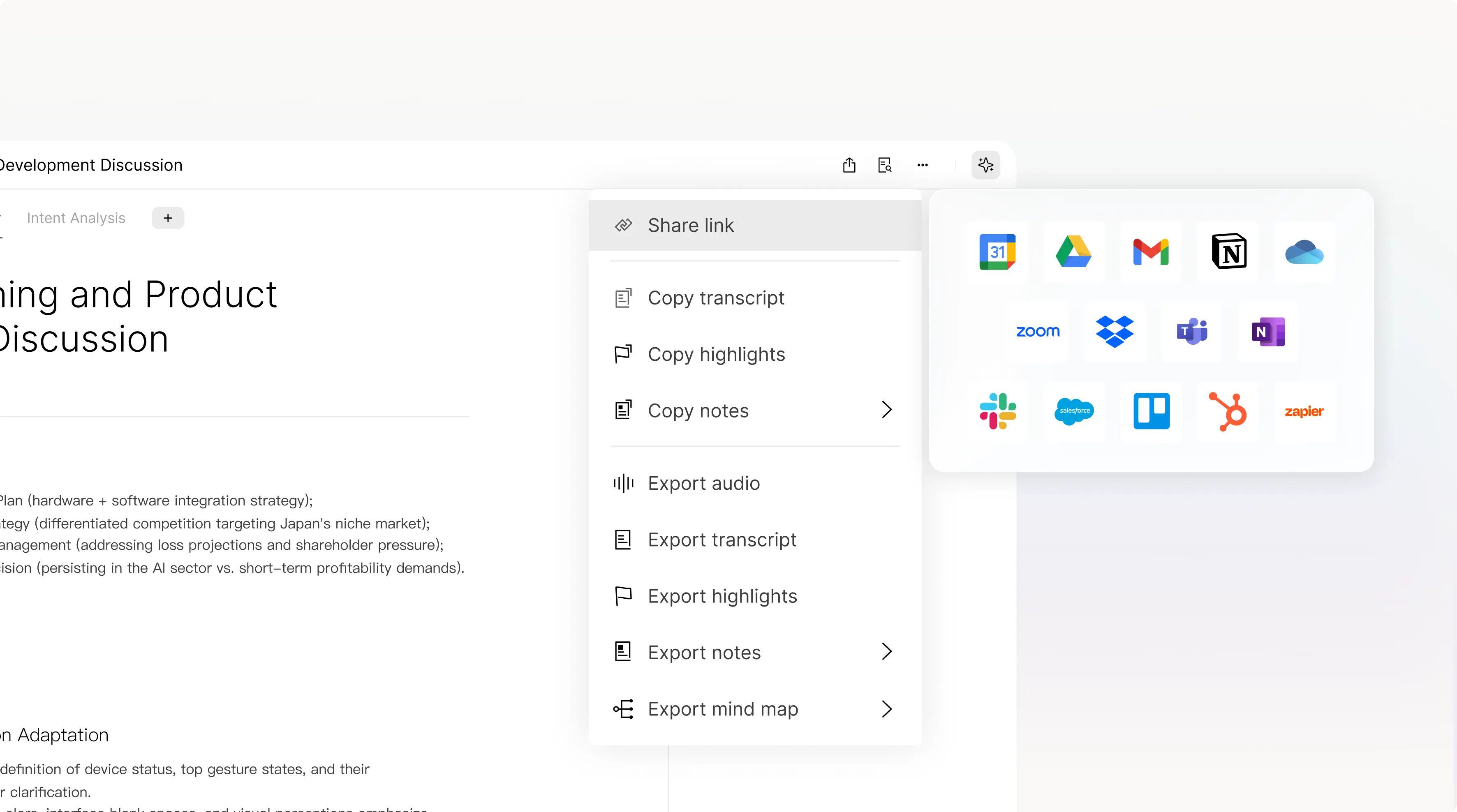 Share files effortlessly in just a few clicks, export your data in over 27 formats, or integrate Plaud with thousands of other tools with Zapier, giving you complete flexibility to use your insights wherever you work.